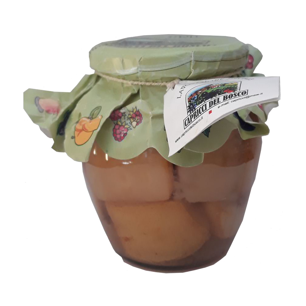 Vaso orcio con tovagliolo 580 ml / 560 g – Ingredienti: frutta, acqua, zucchero, correttore di acidità: acido citrico.